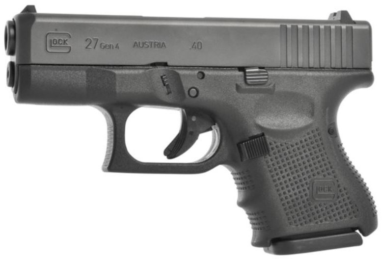 The Gen 4 series of Glock pistols were introduced in 2010. Like most new polymer framed pistols the Gen 4 series features interchangeable grip inserts. The Gen 4 series also incorporates a dual recoil spring assembly, a feature only in previous generations’ compact models. Other features include a reversable magazine release, a Tenifer matte finish slide and new grip texture. Changes in the Gen 4 design are significant enough such that not all parts can be mixed and matched with previous Glock generations. Specifications for Glock 27 Gen4 Pistol, .40 S&W, 3.42in barrel: Manufacturer: Glock Gun Make: Glock Gun Model: Glock 27 Gen 4 Gun Type: Pistol Cartridge: .40 S&W Barrel Length: 3.42 in Housing/Frame Material: Black Polymer Material: Integrated Polymer Sight Configuration: Fixed, White dot front, White square U rear Action Type: Recoil Operated Semi-Automatic Safety Type: Safe Action Trigger Safety Trigger Action: Striker Single-Action (SA) Magazine Capacity: 9 Round Production Year: 2010 – Ongoing Weight: 21.9 oz Height: 4.17 in Width: 1.18 in Length: 6.41 in Muzzle Energy: 369 ft-lbs Muzzle Velocity: 961 ft/s