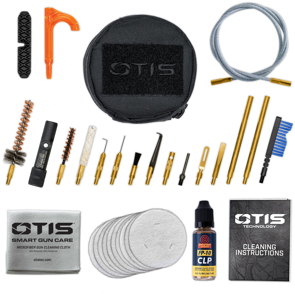 Otis Technology MSR/AR Gun Cleaning System FG-556-MSR holds an array of rifle cleaning tools in a compact, lightweight case for a quick clean in the field or at the range. This Otis Tech cleaning kit contains everything you need to keep your rifles in their best condition in a zippered case that easily fits in pouch or pocket. One small (8″) and one large (30″) Memory-Flex cleaning rod gives the cleaning tools access to every part of your rifle, and specialized precision tools help you break down and re-assemble your firearm with ease. The Otis MSR & AR Portable Field Cleaning Kit includes a bronze bore brush and a Mongoose G2 brush to remove fouling and deposits, a BONE Tool to clean the bolt carrier assembly, one bottle of Otis O85 Ultra Bore Cleaner, and much more. Otis Technology has designed the MSR/AR specifically for all .223 caliber or 5.56mm rifles. Keep your rifles pristine and shining with the Otis Tech MSR+AR .223 / 5.56mm Compact Cleaning Set. Specifications for Otis Technology .223/5.56mm MSR/AR Cleaning Kit: Manufacturer: Otis Technology Color: Black Caliber: .224 Caliber Cartridge: .223 Remington Gun Make: AR Platform Gun Model: Universal Width: 5 in Depth/Thickness: 3 in Height: 8.75 in Package Type: Case Gun Type: Rifle Features of Otis Technology .223/5.56mm MSR/AR Cleaning Kit 100% cotton 2in 10 patches and small slotted tip .223 cal/5.56mm/5.7mm bronze bore brush and bore mop with size marked on brush stem Also suitable for 5.7mm pistols and rifles 30in aircraft grade Memory-Flex cable for proper Breech-to-Muzzle cleaning Small obstruction remover knocks out mud, snow and stuck casings T-handle quickly attaches to cable for added comfort B.O.N.E. Tool quickly and effectively scrapes carbon from bolt, bolt carrier and firing pin .223 cal/5.56mm chamber brush, pin punch, end brush, scraper, straight and bent pick, locking lug scraper, short AP brush and rod handles for more precise cleaning Also includes chamber flag, 0.5 fl.oz. Shooter’s Choice FP-10 Lubricant Elite CLP, microfiber gun cloth All items packed neatly in a 4in x 4in x 2.5in soft pack case Package Contents: Otis Technology .223/5.56mm MSR/AR Cleaning Kit